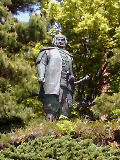 神社入り口では謙信公がお出迎えしてくれます。